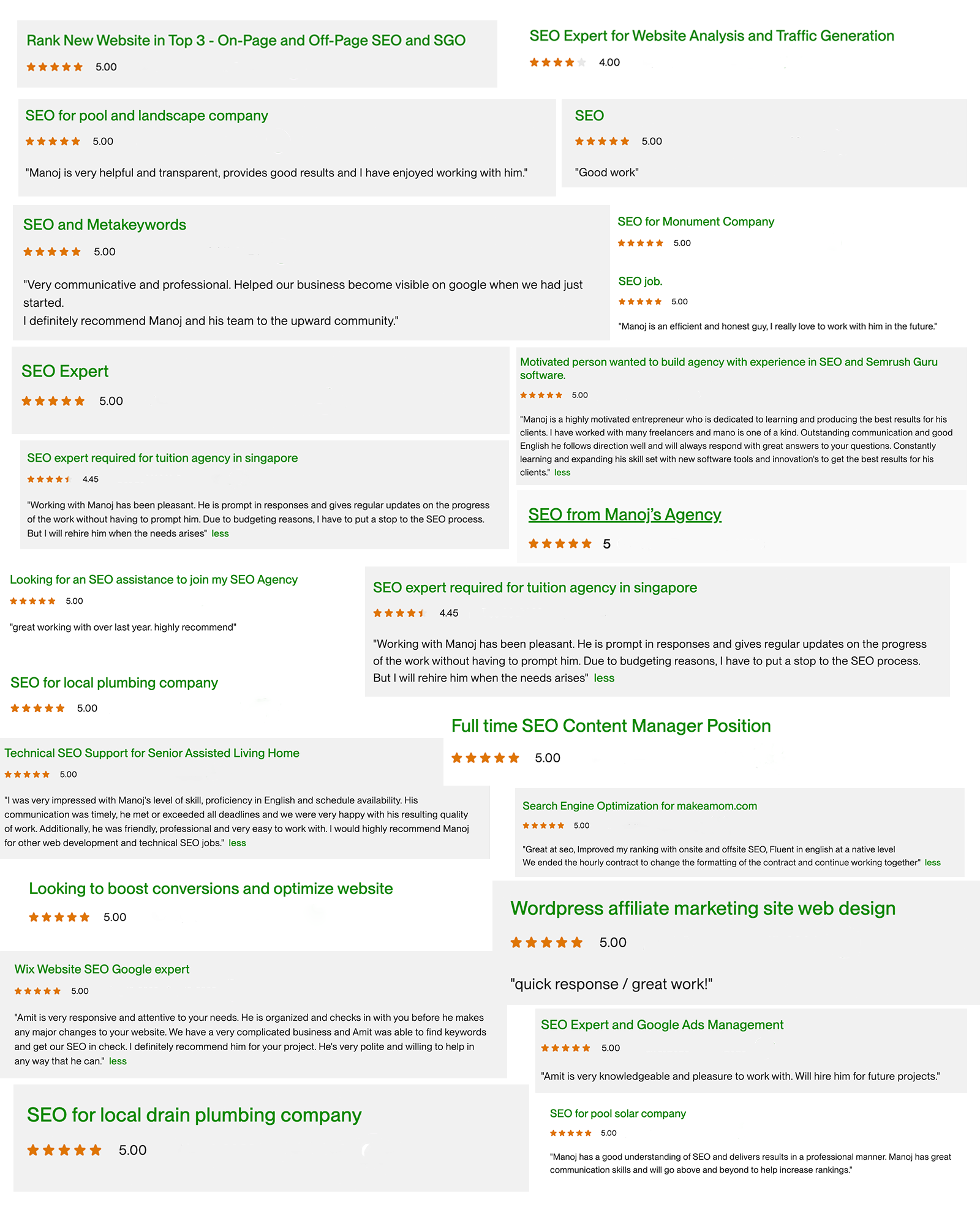 From local businesses to e-commerce brands, our Upwork clients have experienced firsthand the impact of our work. Whether it’s SEO, PPC, or website design, their success stories speak for themselves. Check out what they had to say! 🚀