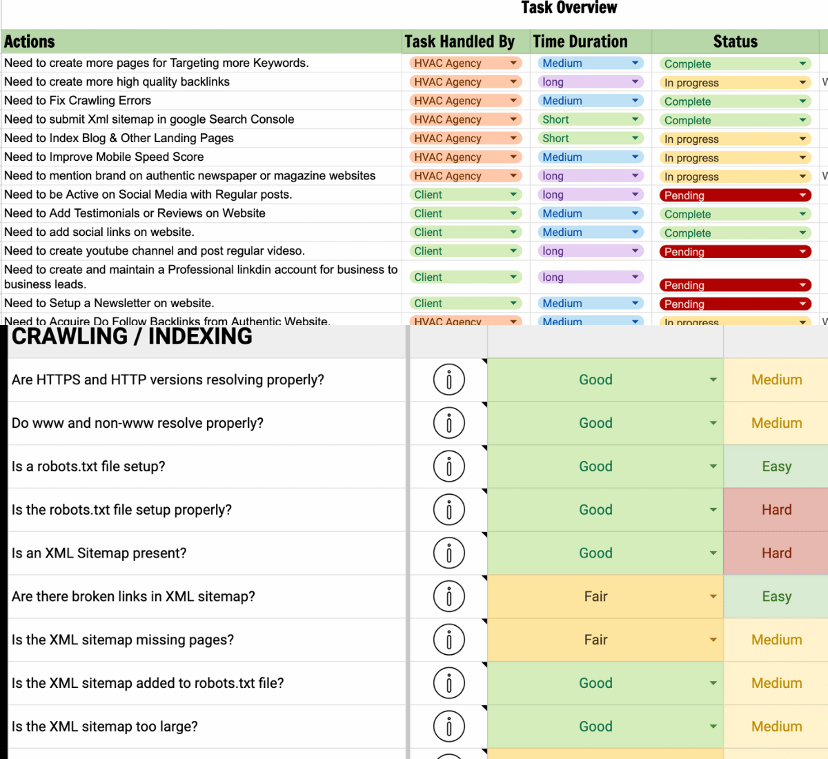 Assess industry competitiveness and your site's ranking potential. Identify usability and credibility issues, with solutions for enhancement. Advise on fixing negative SEO tactics like keyword stuffing and duplicate content for a healthier website.